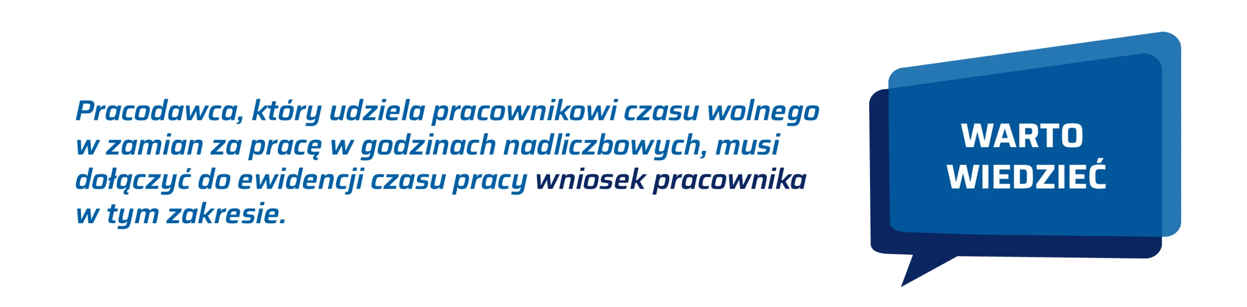 - informację o dniach wolnych od pracy wraz z oznaczeniem powodu ich udzielenia (np. odbiór za pracę w niedzielę),