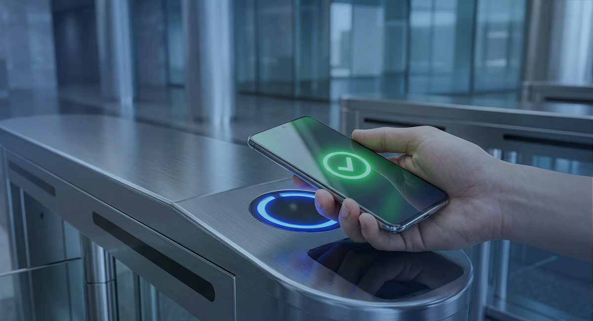 Poświadczenia mobilne działają niczym wirtualna karta zbliżeniowa. Aplikacja do kontroli wejścia może zostać zainstalowana w telefonie czy na tablecie z technologią NFC lub Bluetooth. Po jej aktywacji i konfiguracji z zainstalowanym w budynku systemem, użytkownik musi tylko przyłożyć urządzenie mobilne do czytnika (wystarczy z odległości kilkunastu cm) lub przesunąć suwak w aplikacji.
